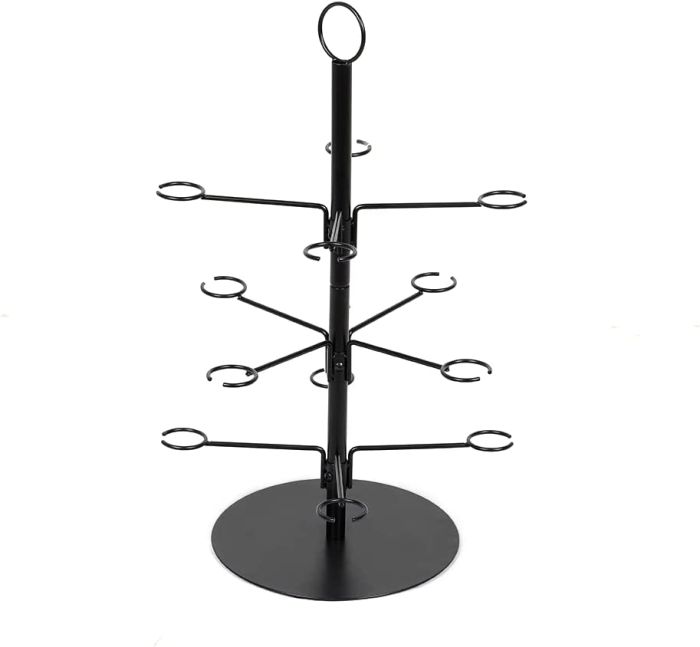 - This elegant black Cocktail Tree holds up to 12 Glasses of any drink of your choice as long as the glass fits within the holder.