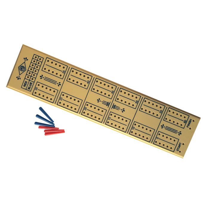 The Domino Marking/Cribbage Board features a number of holes up and down the length of the board lacquered in vintage plastic.