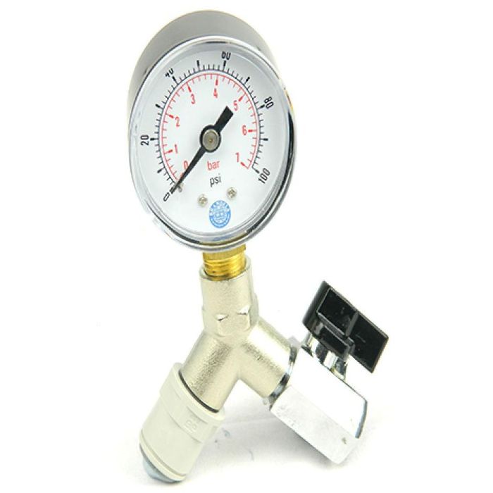 Gauges - use this to test gas pressure so you can accuratley gauge downstream pressure up to 100PSI, contains a shut off value with a 3/8" Push Fit.