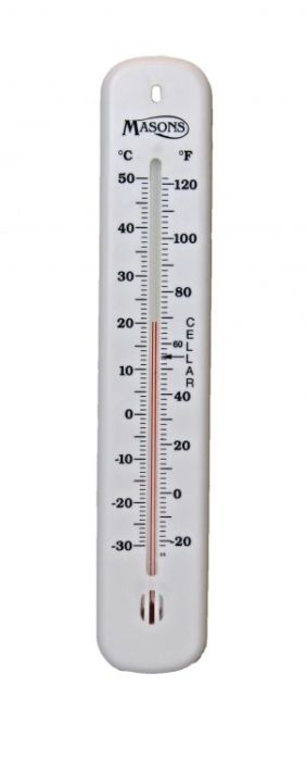 The Economical Plastic Cellar Thermometer hangs easily on the cellar wall.