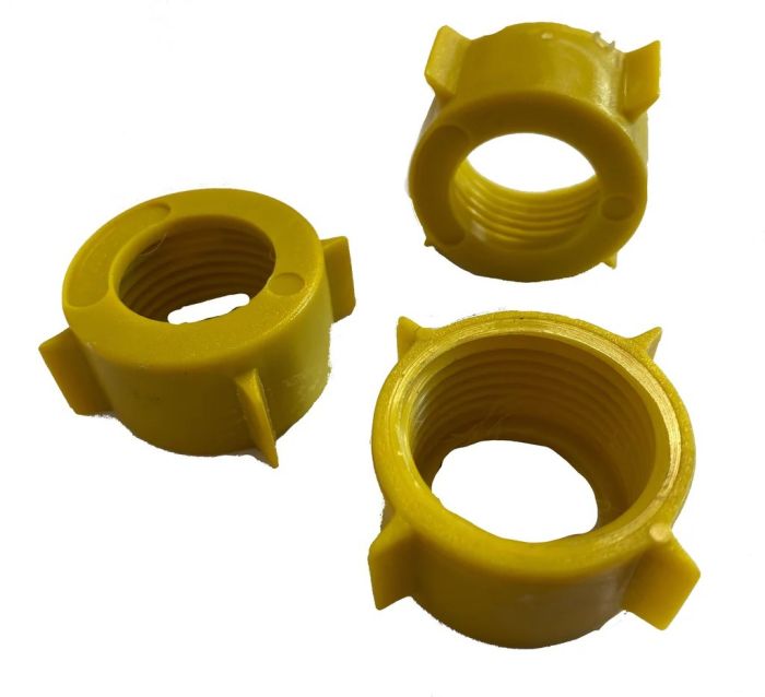 The Plastic Hex Burr couples with an appropriate Hose Tail to establish a pipe connection with the Cask Tap.