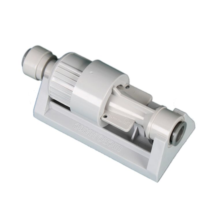 Plastic moulded Flow Control Valve incorporating John Guest Push-Fit sockets - optional plastic bracket.