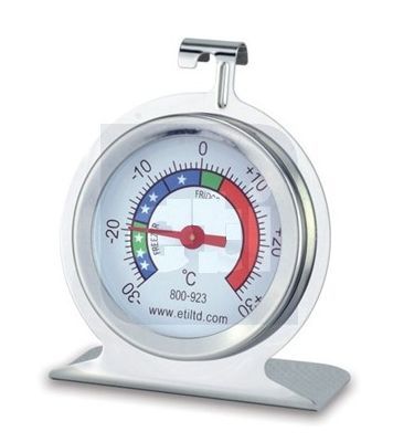 This stainless steel, Fridge or Freezer Thermometer has a 50mm dial with clearly marked scale and temperature zones, indicating temperature over a range of -30 to 30°C in 1°C divisions.