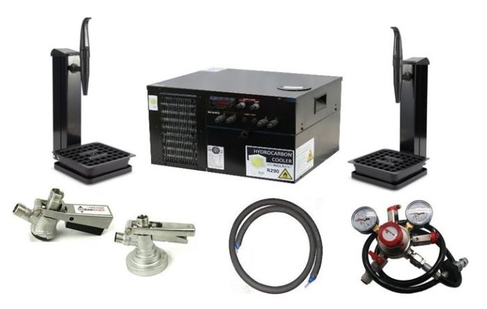 Two Product Mixed Gas Keg Beer Dispense KIT with New Shelf Cooler